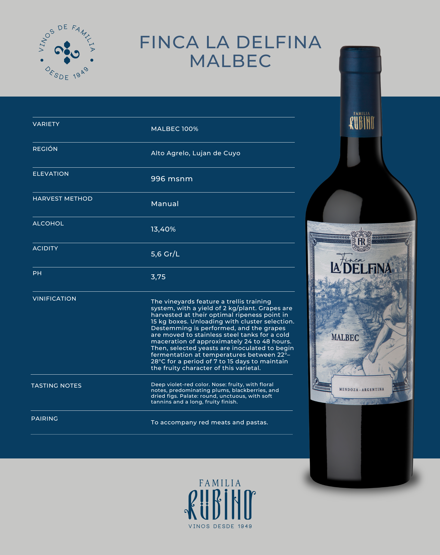 An authentic, balanced wine with a noble spirit, true to the character of Finca La Delfina.
